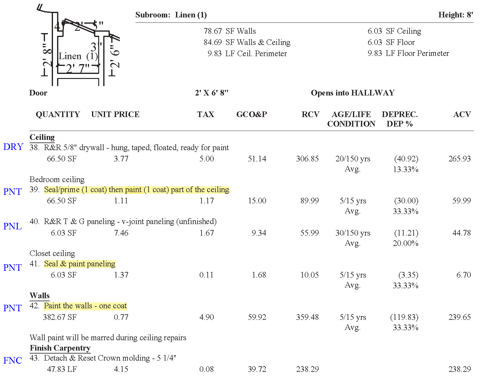 This bottleneck rippled through the business. To create work orders, Production Managers combed through insurance-approved PDF scopes, manually mapped every line item to a specific trade – e.g. Seal (1 coat) & paint (2 coats) baseboard -> PNT – and built work orders and budgets by hand.