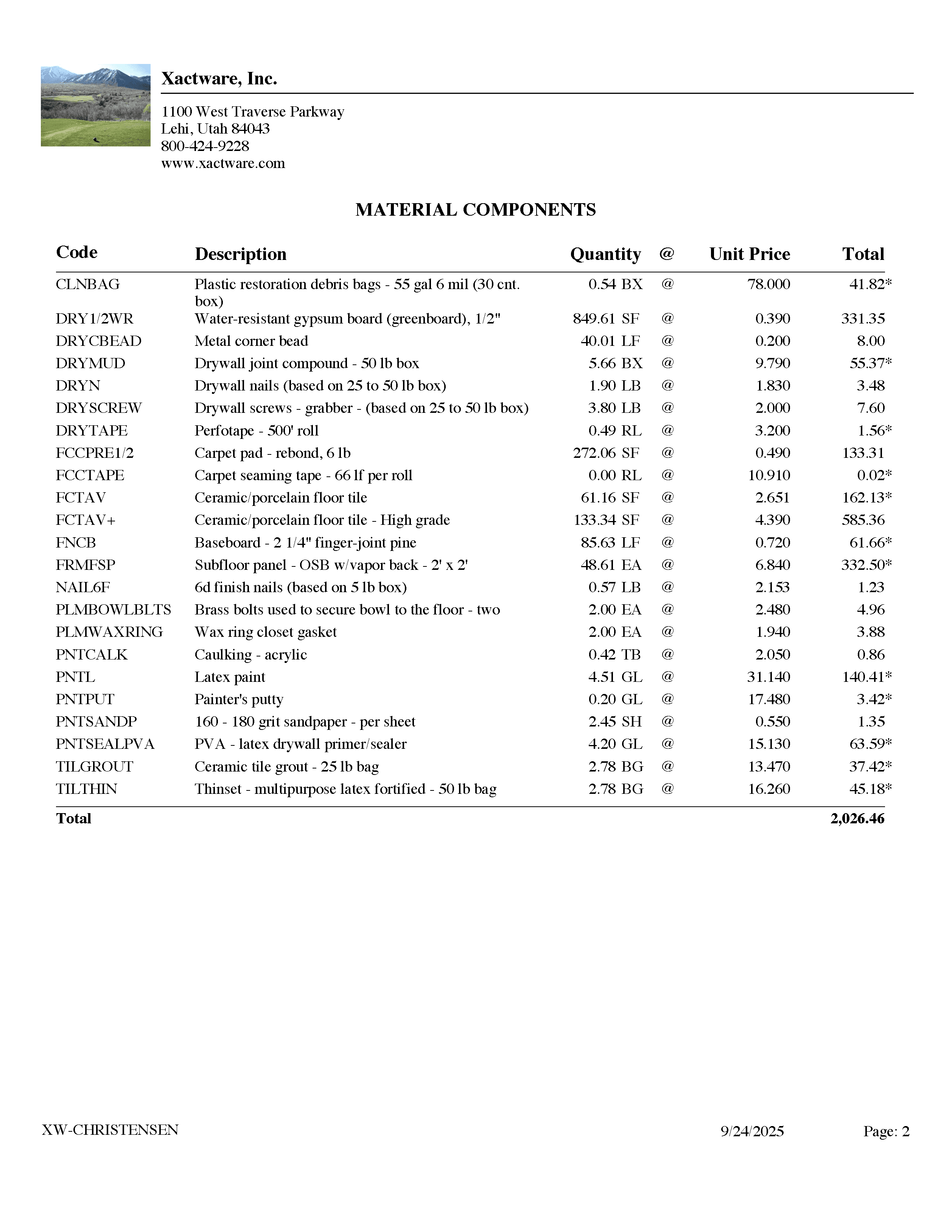 Description: Breaks the estimate into materials, equipment, and labor components.